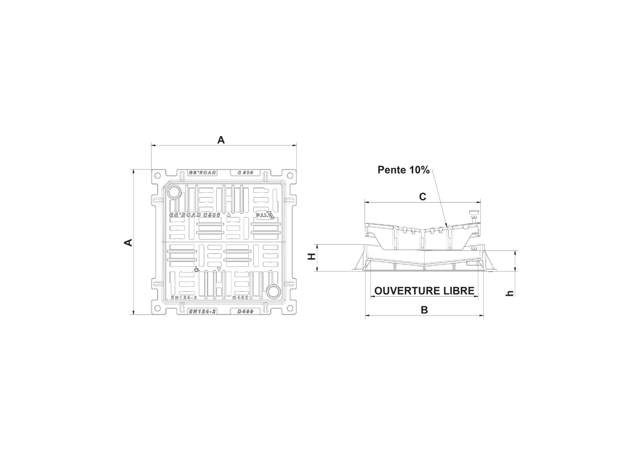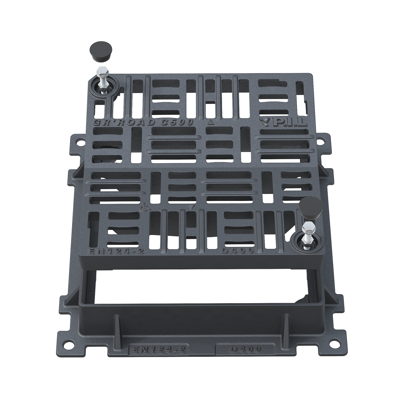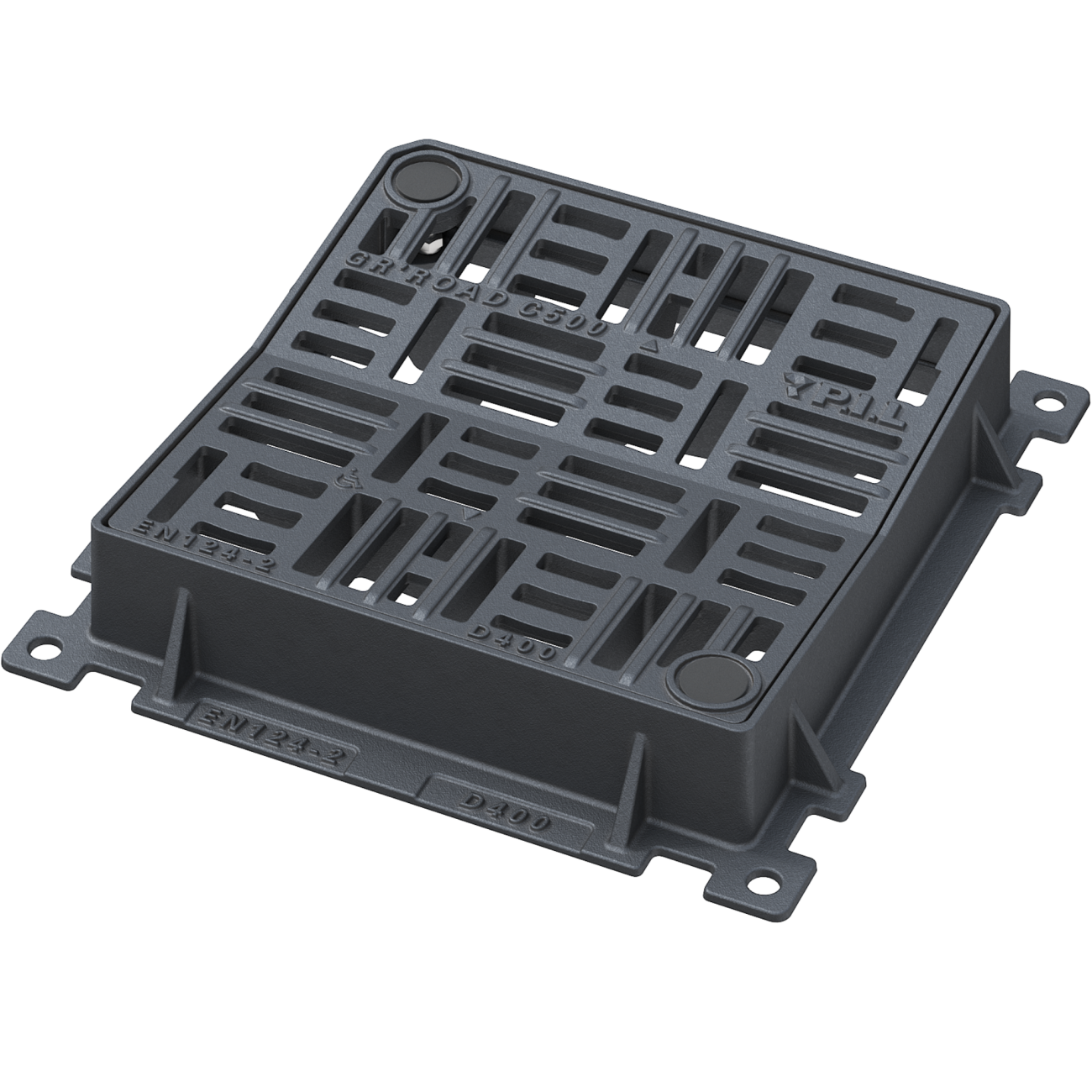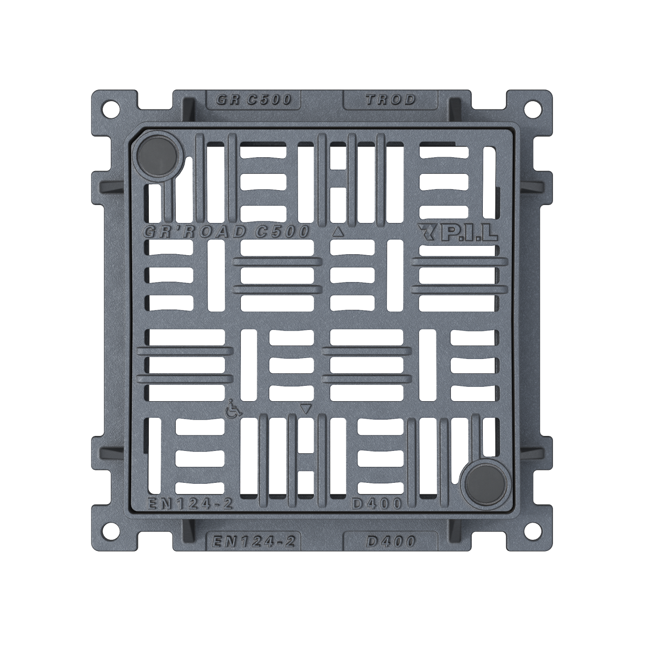 GRROAD_C500Grille concave verrouillée avec cadre carré D400 500x500mm PMR GR'ROAD_C500