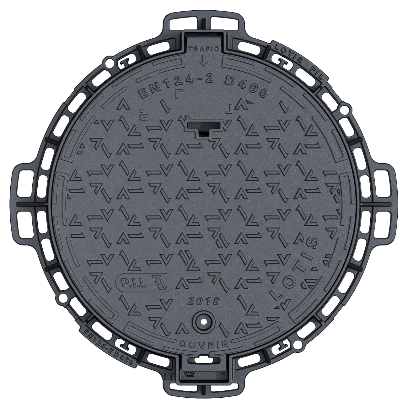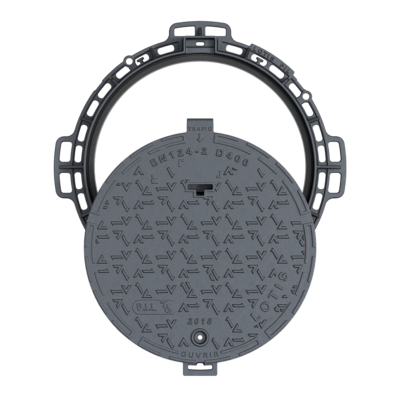 LOTISD400Regard de chaussée verrouillable à cadre rond D400 LOTIS pour trafic moyen