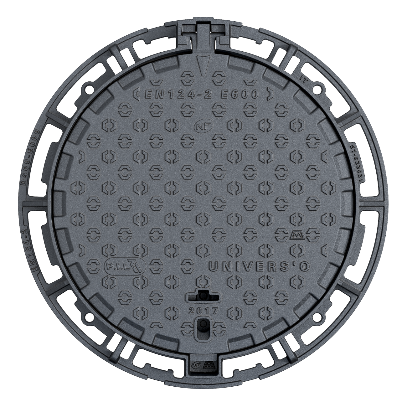 UNIVERSO_E600 Regard de chaussée E600 Ø850mm articulé UNIVERSO pour trafic intense Données produit Référence Dimensions (mm) Hauteur (mm) Ouverture libre (mm) Masse (kg) My P.I.L UNIVERSO_E600 Ø 850 100 Ø 615 79,7 Quantité Decrease quantity Increase quantity Réinitialiser la quantité Téléchargement Fiche technique Characteristic Value Dimensions (mm) Ø 850 Hauteur (mm) 100 Clear opening (mm) Ø 615 Masse (kg) 79,7 My Wrekin Quantité Decrease quantity Increase quantity Réinitialiser la quantité Téléchargement Fiche technique Images Données produit Informations générales Stock code UNIVERSO_E600 Primary material Fonte ductile Category Dispositifs de fermeture Normes, classes et groupes Standards EN 124 BS EN 124 Class E600 BS EN 124 Group 5 Third party certified NF Dimensions Frame shape Rond Manhole shape Rond Overall frame (A x B) Ø 850 mm Clear opening Ø 615 mm Frame depth (H) 100 mm Weight 79,7 kg Téléchargements P.I.L - UNIVERSO E600 - Regard de chaussée trafic intense NF Rev_C.pdf Téléchargement-pdf